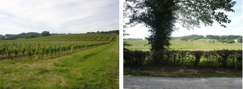 Lisbeth Vidal, Mme Castagne and Françoise in the viticultural area of Chateau la Borderie.