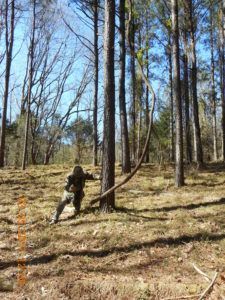 From the beginning of Winter, and up to the first heat of Summer, the ritual begins. Patrick dresses in his military fatigues, a pair of boots, a military helmet, and a pair of thick gloves. All of this is in order to better melt into the universe of his woods. At the same time, he carries a small pair of clippers in a holster attached to his belt, an ax and heavy-duty clippers.