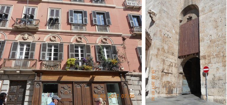 Sardignia, The port of Cagliari with its elaborate balconies. The entrance to the “Elephant Tower”.
