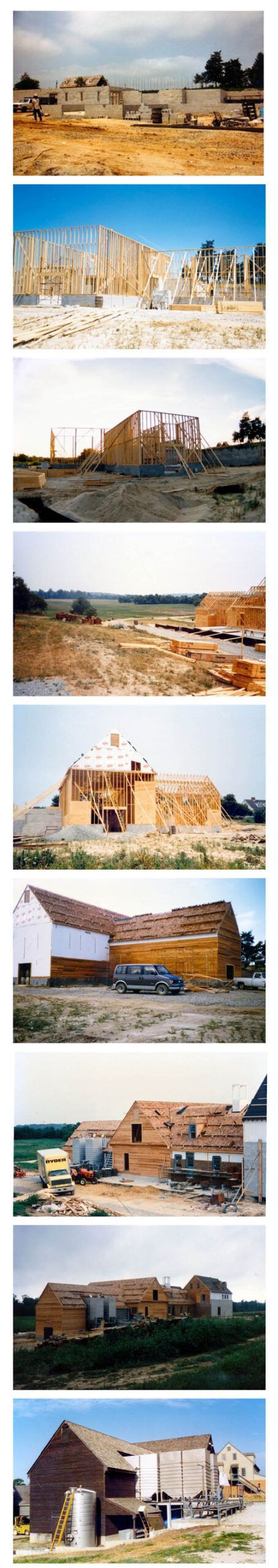 The building was taking shape. Our neighbor, Mr. Farmer, a World War II Veteran and a master welder, came and worked on the roof structure of the barrel cellar and the installation of the vertical piers which were designed by the architect who had adapted our ideas to working plans. Ken Crook directed the operation of the framing of the building, and planned the plumbing and electrical circuitry. What amperage were we going to need? Total up all the three phase equipment and one realized that a special line would be required to be installed by the local utility company.